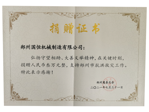 一場(chǎng)千年一遇的大雨,造成整個(gè)城市排水系統(tǒng)癱瘓,因暴雨導(dǎo)致的洪水,造成多地受災(zāi)嚴(yán)重,有人甚至因此失去了生命,為了支援災(zāi)后重建,鄭州國(guó)恒機(jī)械設(shè)備制造有限公司,捐款叁萬元整,支持鄭州市抗洪救災(zāi)工作,愿我們守望相助,共渡難關(guān)。